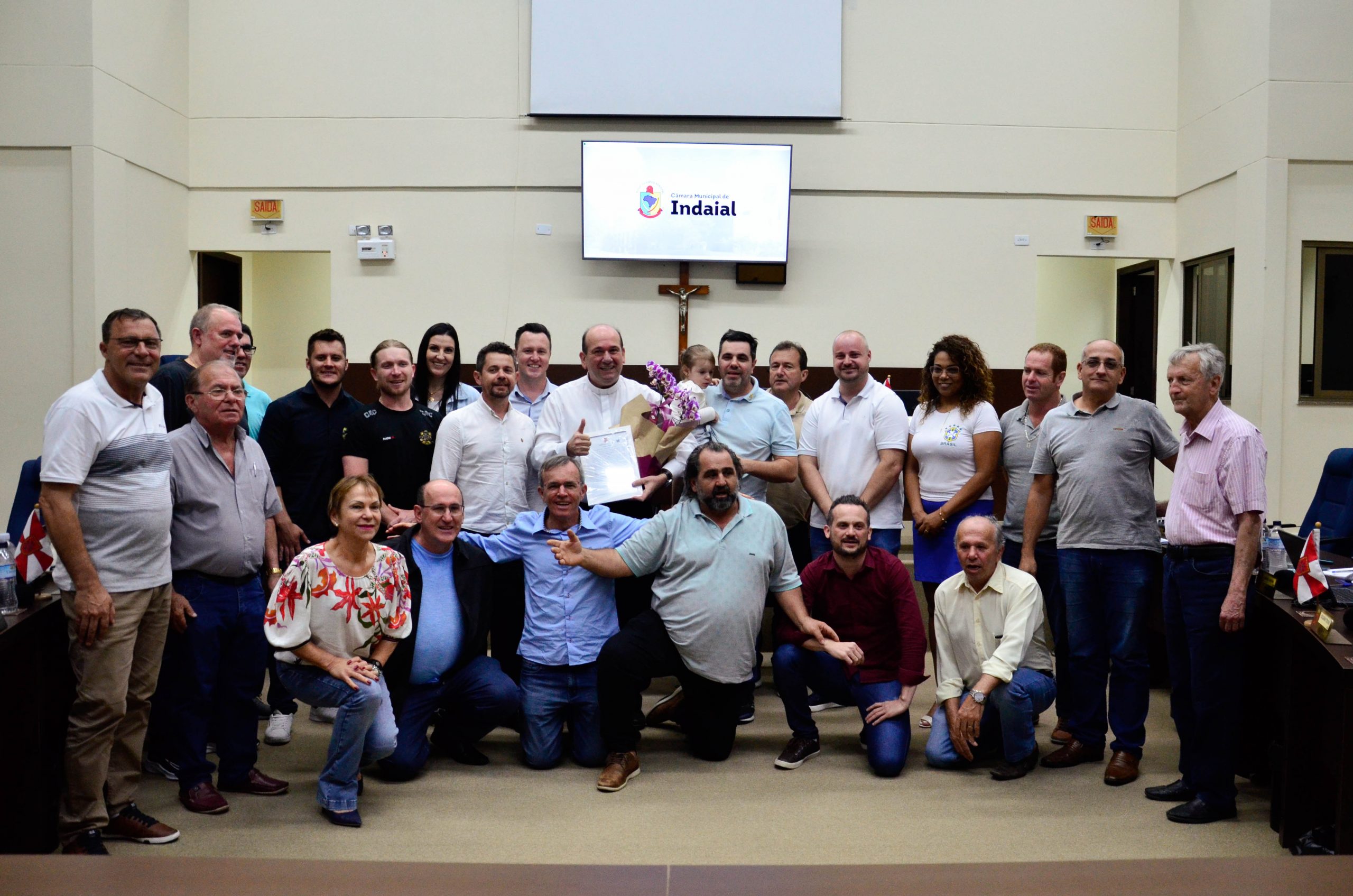 INDAIAL – O padre João Bachmann recebeu uma homenagem dos vereadores de Indaial, na sessão ordinária desta terça-feira (25). A moção de aplausos em comemoração aos 30 anos de sacerdócio, fé e dedicação de João Bachmann foi aprovada no último dia 13.