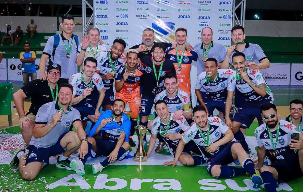 FUTSAL – O Pato Futsal é campeão da Copa do Brasil Sicredi de Futsal 2022. O inédito título foi conquistado neste domingo (18), com a vitória na prorrogação sobre o Jijoca Futsal, por 1 x 0, após derrota no tempo normal pelo placar de 5 x 4, no Ginásio Josino Bernardino, em Cruz (CE). O time comandado por Sérgio Lacerda havia vencido o jogo de ida, em Pato Branco, por 2 x 1.