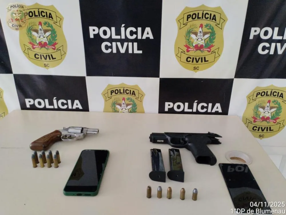 Polícia Civil apreende armas e prende suspeito em operação contra venda irregular de remédios em Blumenau