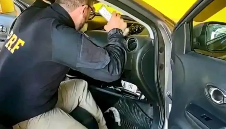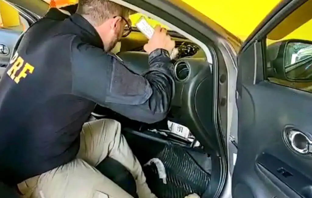 A vistoria no carro encontrou compartimentos ocultos no painel, portas e banco traseiro, onde havia diversos tabletes de pasta base de cocaína. Esta quantidade de droga equivale a aproximadamente R$ 7,3 milhões, de acordo com a PRF.