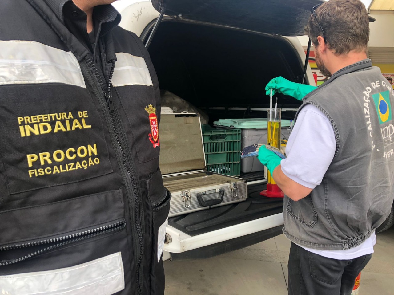 INDAIAL – Na segunda-feira, 18 de abril, o Procon de Indaial acompanhou uma operação de fiscalização da Agência Nacional do Petróleo, Gás Natural e Biocombustíveis (ANP) em postos de combustíveis instalados no Município. O objetivo foi verificar se os estabelecimentos estavam comercializando os combustíveis em condições ideais para o consumo, de acordo com o previsto nas exigências legais.