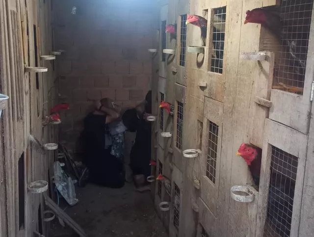 O local ainda abrigava 10 aves silvestres presas em gaiolas, além de dinheiro usado para apostas, um caderno com a contabilidade dos duelos e apetrechos usados nos confrontos, como esporões metálicos e plásticos, usados para ferir os galos, que lutavam até a morte.