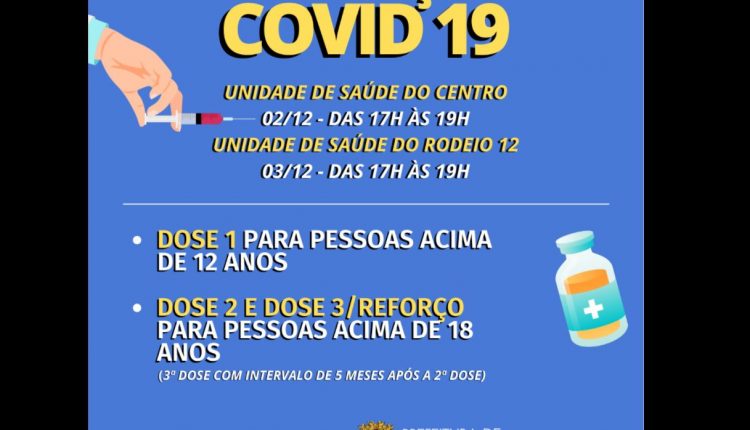 RODEIO – A Secretaria Municipal de Saúde informa que a Vacinação contra a Covid-19 será realizada nos dias 02 e 03 de dezembro nos seguintes locais e horários: