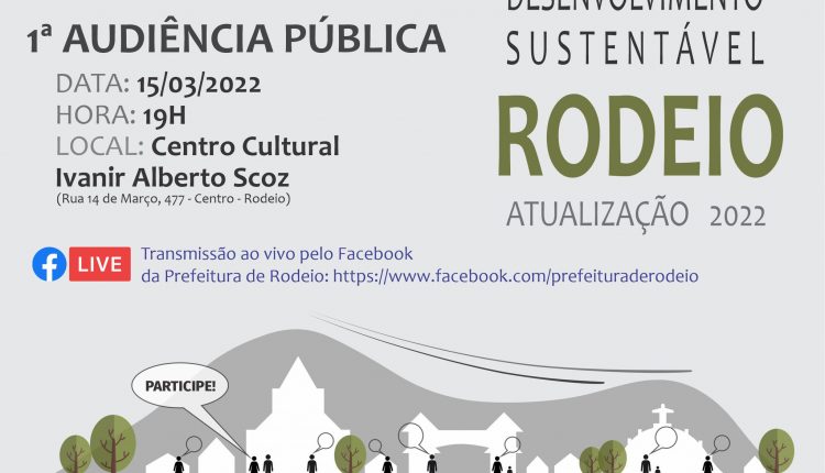 A Audiência será realizada no dia 15 de março, às 19 horas no Centro Cultural “Ivanir Alberto Scoz” no centro de Rodeio. Haverá transmissão através do Facebook da Prefeitura de Rodeio.