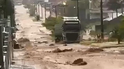 Ruas viram rios e Benedito Novo volta a sofrer com chuva forte