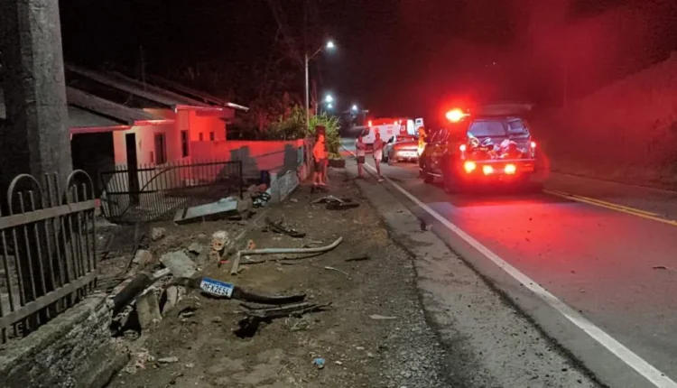 Saída de pista na SC-477 deixa dois homens feridos após batida contra poste e muro em Rodeio