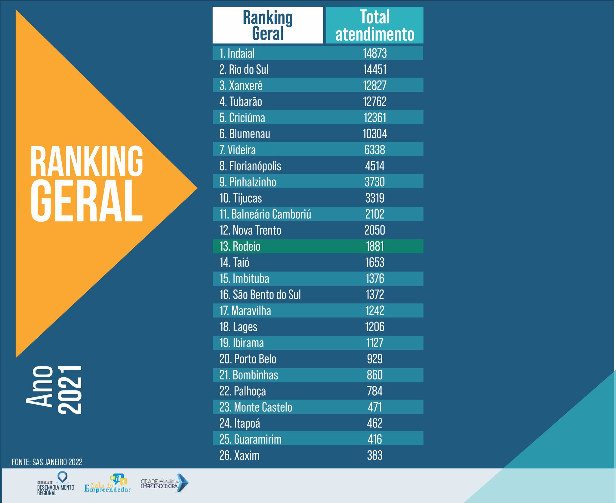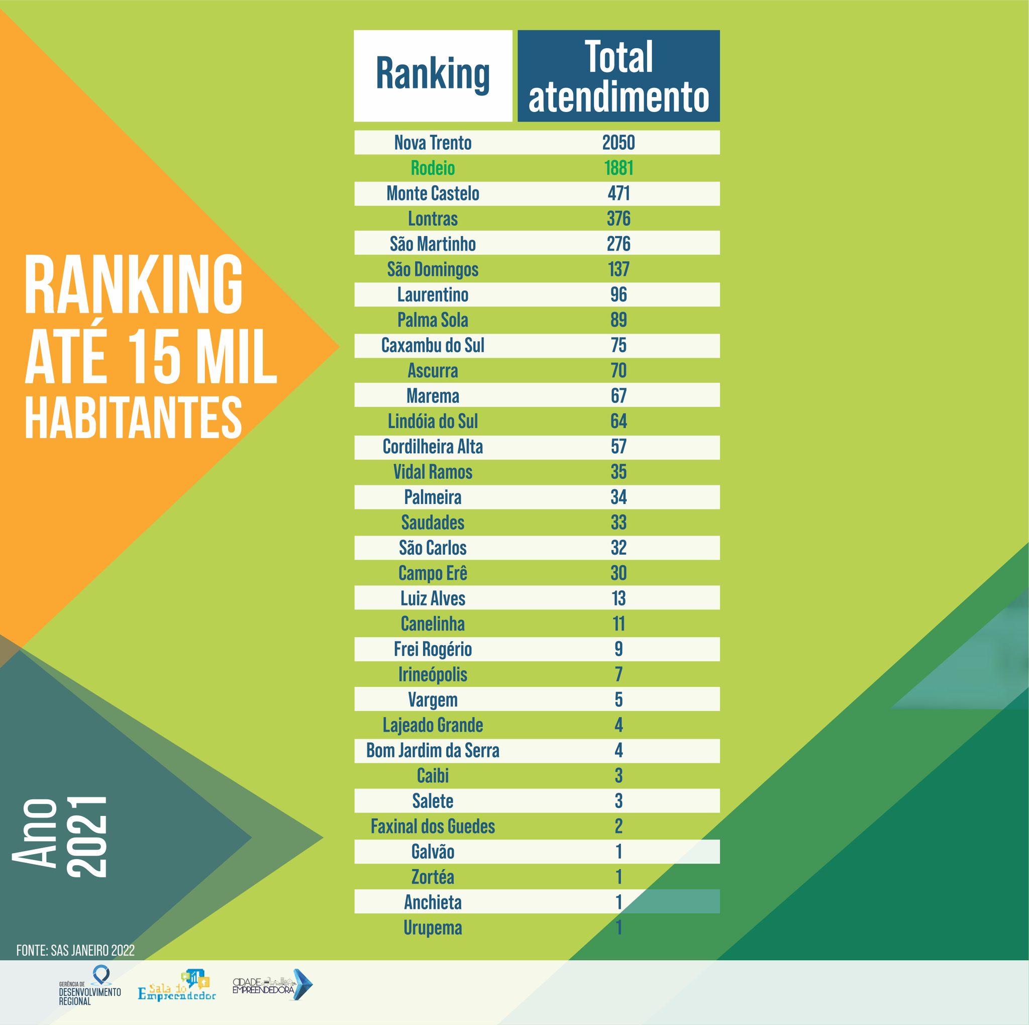 RODEIO – A Sala do Empreendedor de Rodeio é a 13ª cidade que mais atendeu microempreendedores em nosso estado durante o ano de 2021, conforme dados do Sebrae no ranking geral. Já para cidades de até 15 mil habitantes Rodeio figura como a 2ª cidade que mais atendeu.