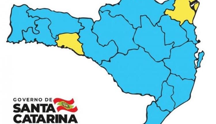 SANTA CATARINA – Santa Catarina voltou a ter duas regiões no nível alto (cor amarela) no mapa de risco da Covid-19 após três semanas consecutivas com todo o Estado no moderado (cor azul). A atualização da Secretaria da Saúde foi divulgada no sábado (1).