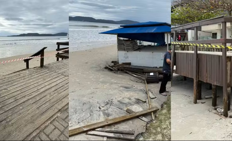 A combinação de fenômenos naturais, agravada pelas mudanças climáticas, é responsável pela destruição de estruturas em regiões costeiras de Santa Catarina. Segundo Frederico Rudorff, gerente de monitoramento e alerta da Defesa Civil, eventos como maré alta, lua cheia e ventos já levaram ao menos sete municípios a decretarem de emergência em 2025.