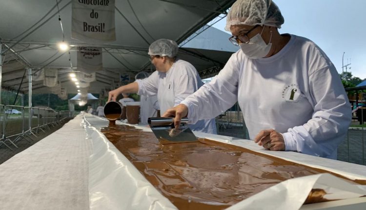 Timbó faz a maior barra de chocolate do Brasil para comemorar 90 anos