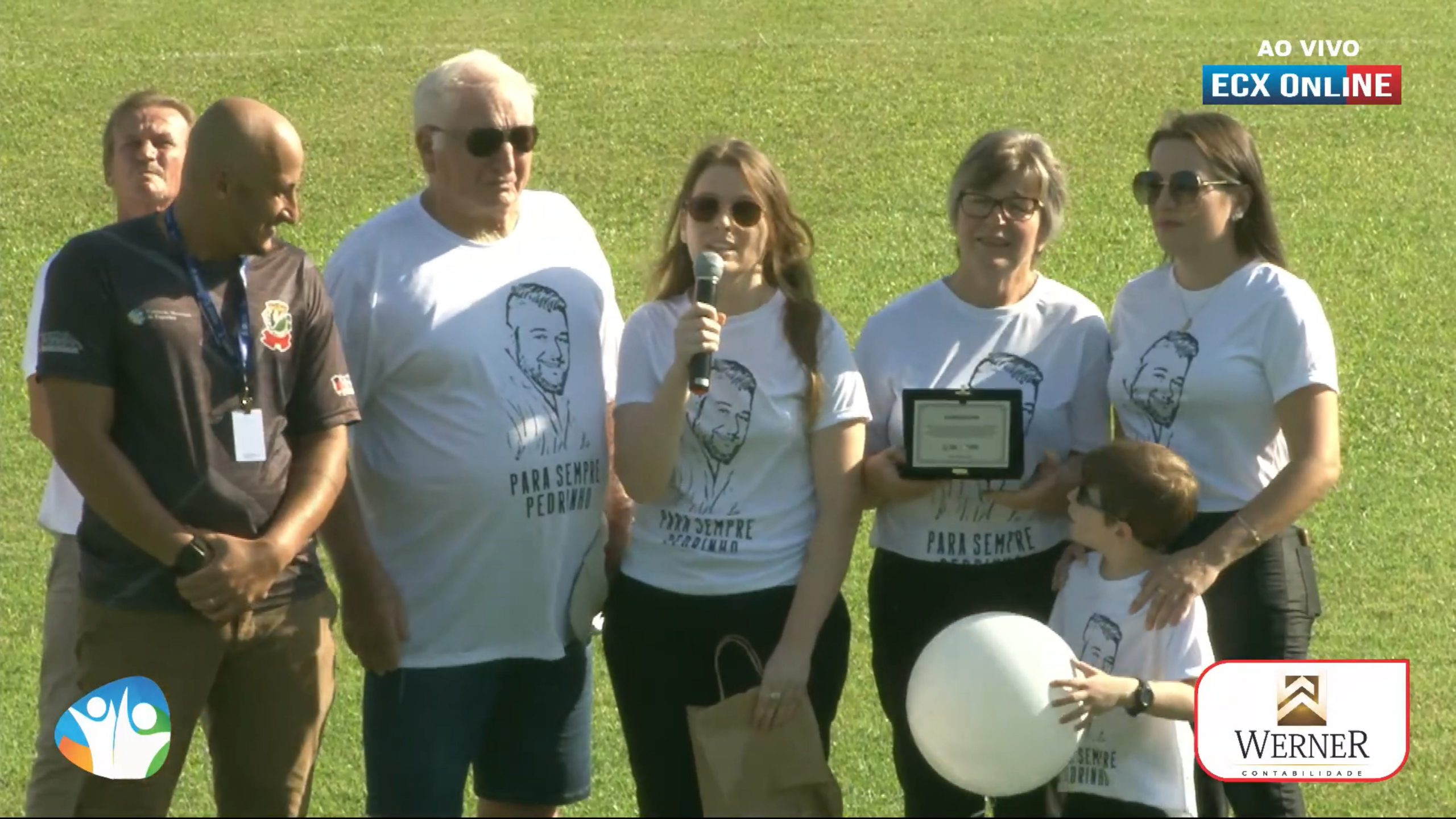 Antes da bola rolar, uma linda e justa homenagem promovida pela FME e Prefeitura Municipal de Ilhota, à Pedro Francisco de Souza Filho, mais conhecido popularmente como Pedrinho ou Pedrinho do Baú, que levou o nome do Campeonato em 2024.